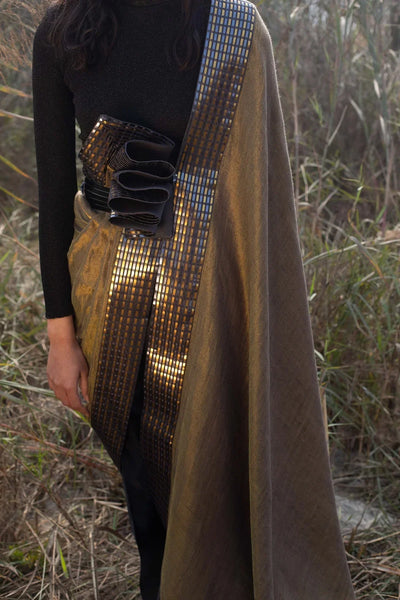 Khaki Banarasi Tussar Silk Saree with Antique Zari Buttas and Contrast Zari Border | SILK MARK CERTIFIED