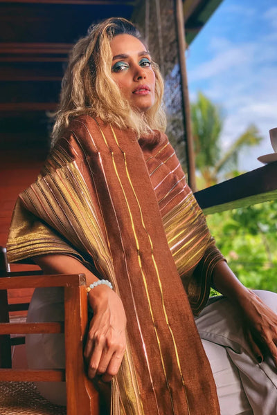 Brown Viscose Tissue Saree with Meenakari Floral Jaal and Zari Border