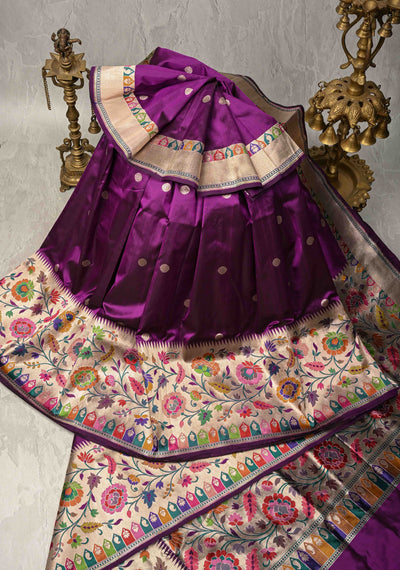 Jamuni Purple Pure Banarasi Katan Silk Saree with Zari Buttas and Paithani Style Borders-Pallu | SILK MARK CERTIFIED