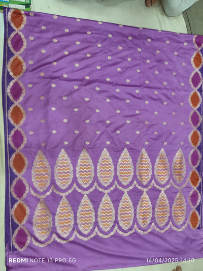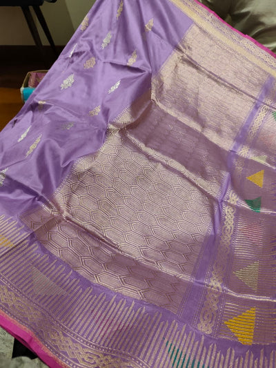 Lilac Pure Banarasi Silk Saree with Sona Rupa Butta and Geometric Meenakari Zari Border | SILK MARK CERTIFIED