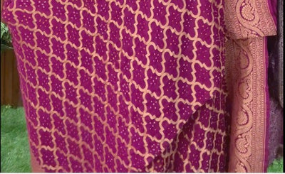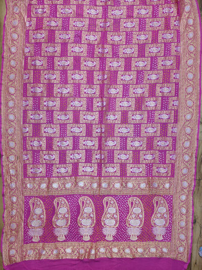 Rani Pink Authentic Hand Bandhej Banarasi jaal Georgette silk Saree with Alfi Paisley Motifs | SILK MARKED CERTIFIED