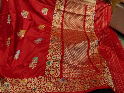 Red Pure Banarasi Silk Saree with Floral Ornate Meenakari Butta and Border | SILK MARK CERTIFIED