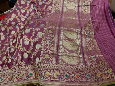 Mauve Rangkaat StyleBorder Banarasi Semi Mashru Silk Saree with Floral Zari Butta and Brush Dye Meenakari Scallop Border