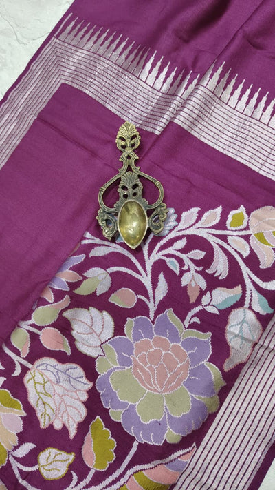 Deep Purple Pure Banarasi Mashru Silk Saree with Floral Meenakari Butta and Zari Border | SILK MARK CERTIFIED