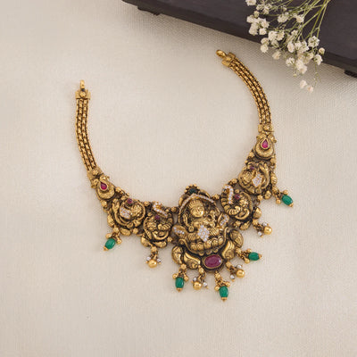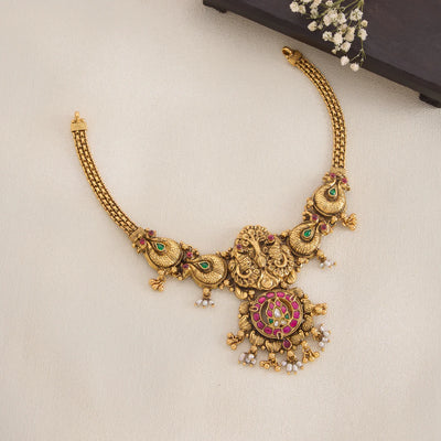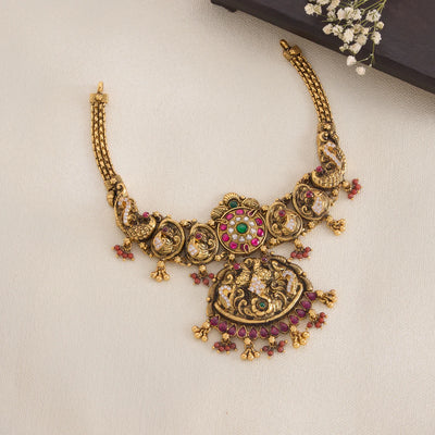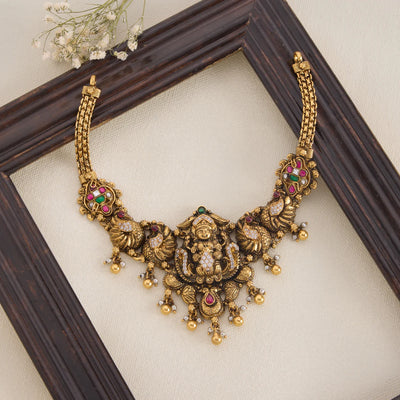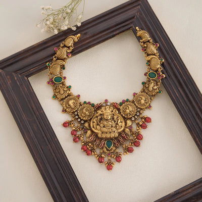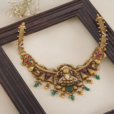 Pure 92.5 Silver, Gold Plated Saura Lakshmi Short Necklace