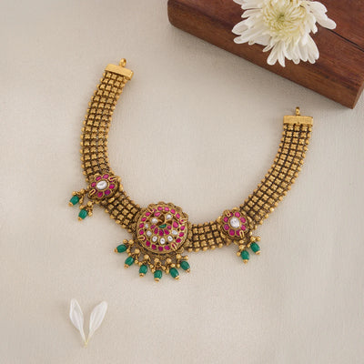 Pure 92.5 Silver, Gold Plated Shravanthi Short Necklace