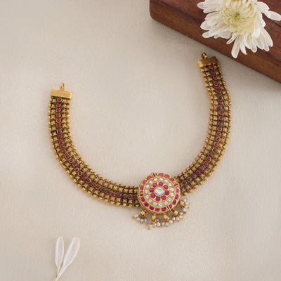 Pure 92.5 Silver, Gold Plated Charishma Short Necklace