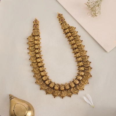 Pure 92.5 Silver, Gold Plated Kasu Swarnika Necklace