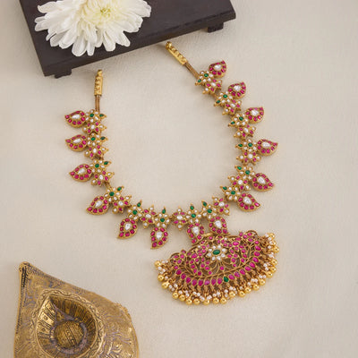 Pure 92.5 Silver, Gold Plated Iraja Manika Short Necklace