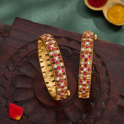 92.5 Silver, Gold Plated Gajaratna Bangles