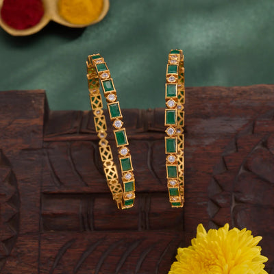 92.5 Silver, Gold Plated Emera Flora Bangles