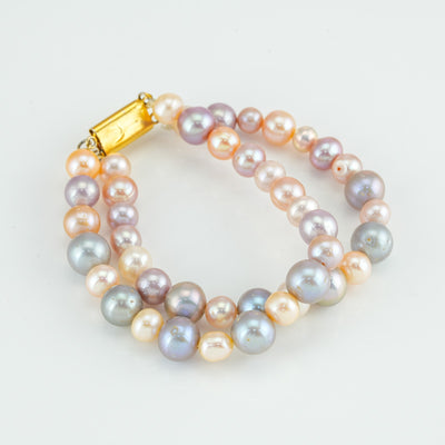 Pastel Rainbow Bracelet with 2 Strands of Aunthetic Pearls