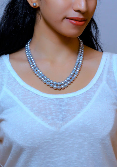 Gray Gold 2 Strand Real Pearl Necklace Set