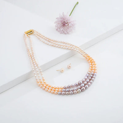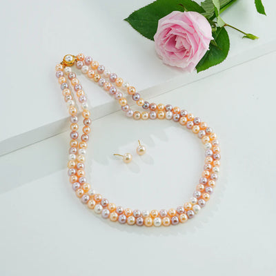 7.0-8.0mm Multicolor Round Freshwater Pearl Necklace Set - AAA Quality