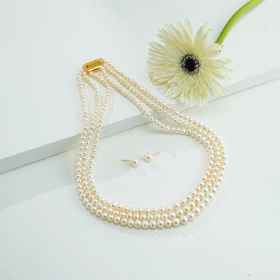 5.0-6.0mm White Button Fancy Freshwater Pearl Necklace Set - AAA Quality