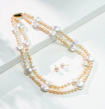 Freshwater 2 Strand Stylish Multicolor Pearl Necklae Set