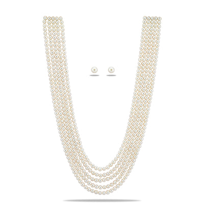 Single Strand White Round Pearl Necklace Set