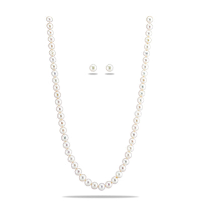Pure Pearls Single Line Necklace and Drop Earrings Set