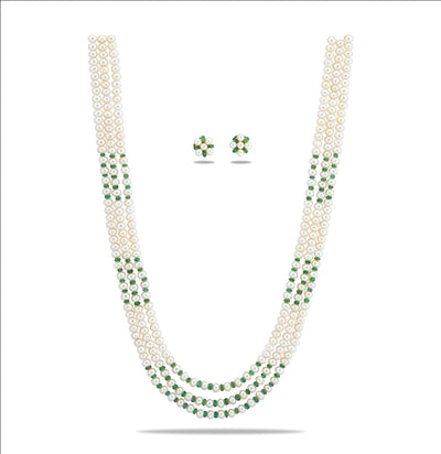Natural Emerald Pearl 3 Strand Necklace Set
