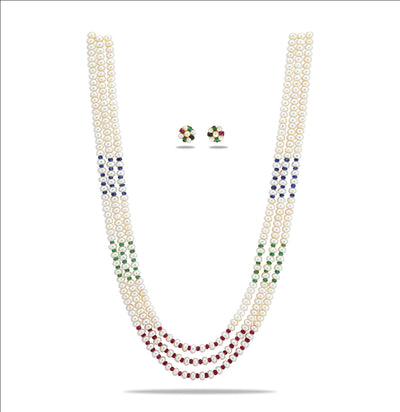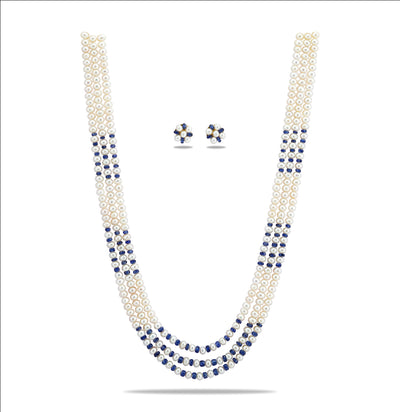 Exotic Sapphire 3 Strand Pure Pearl Necklace Set