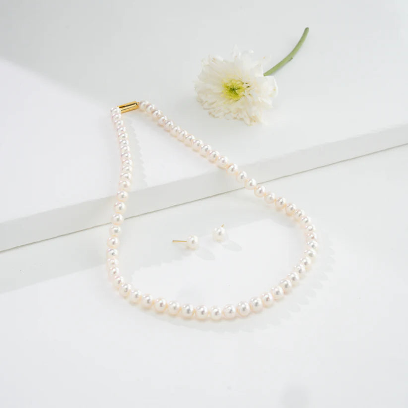 Note: The pearls used in this set are real. As with all natural materials, there may be slight inconsistencies such as in its shape and color. These are characteristic and attest to their authenticity and are not considered as defects,