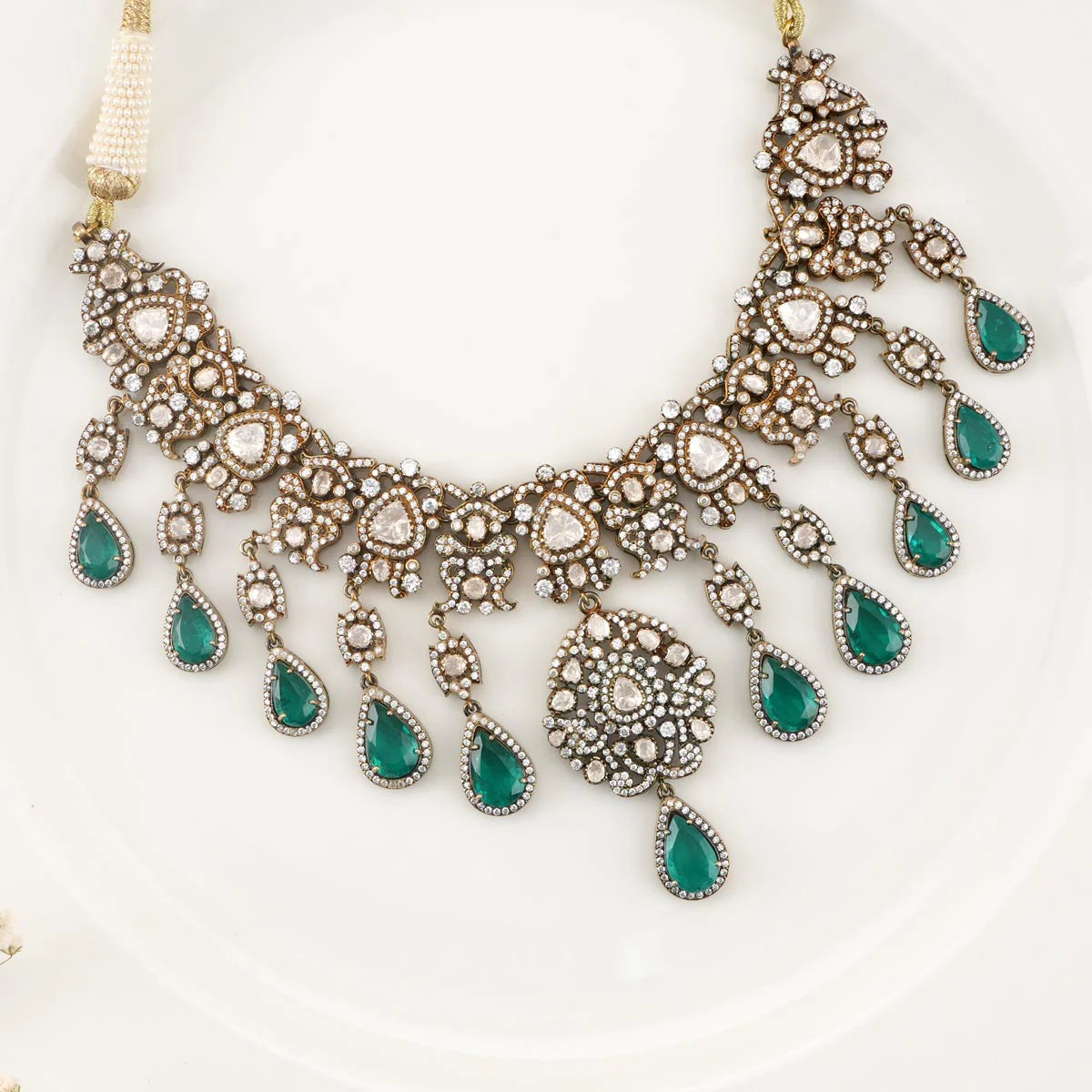 92.5 Silver, Victorian Necklace studded with Gem Stones.
