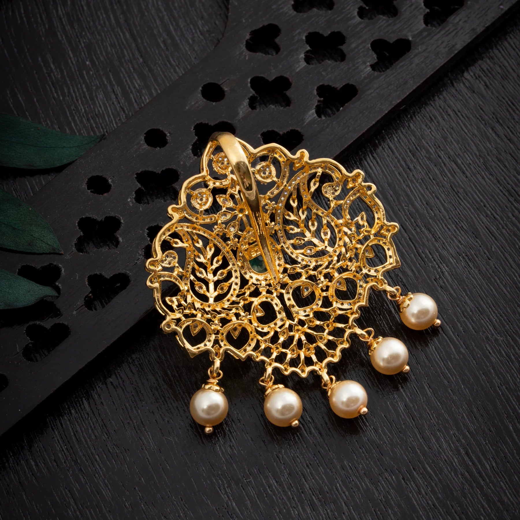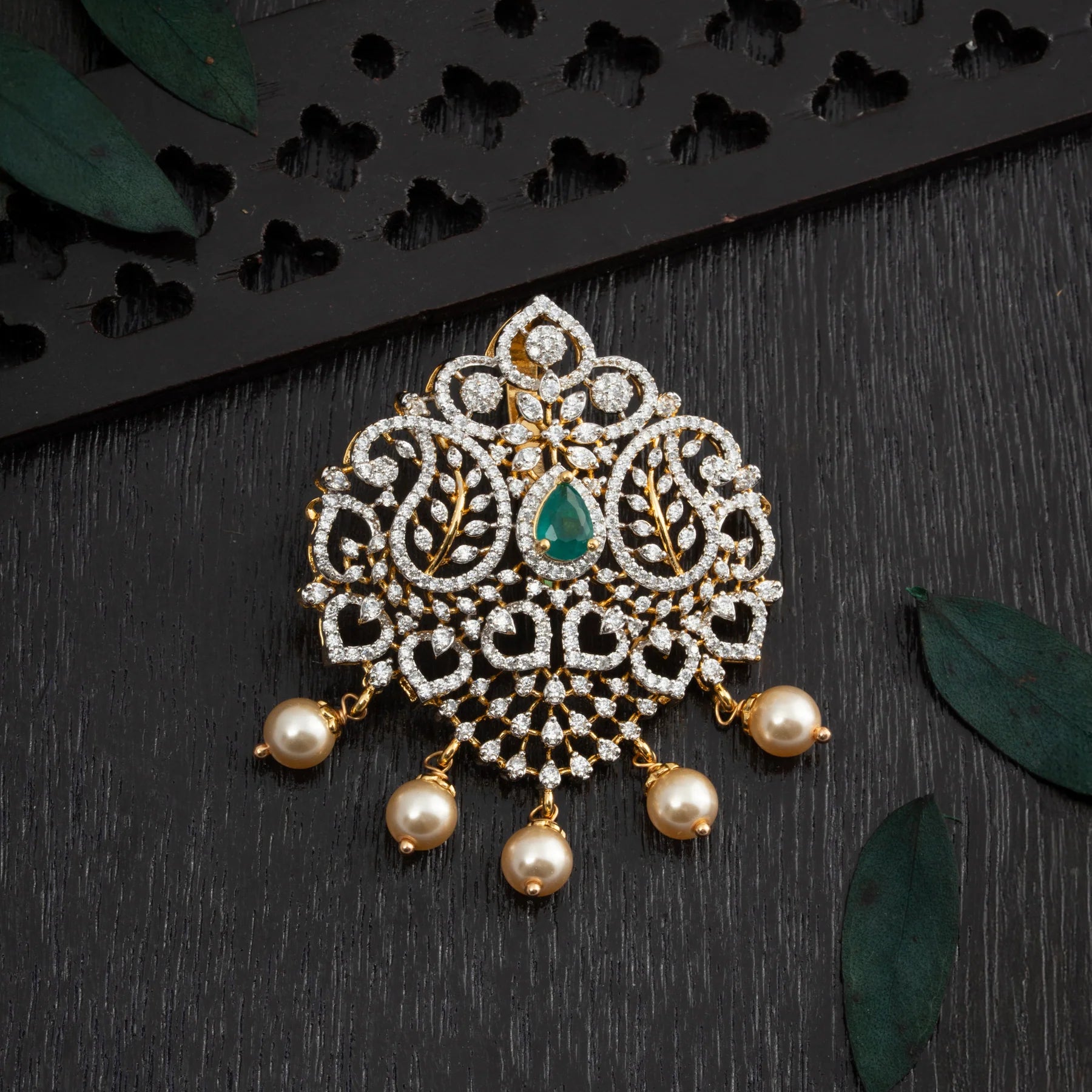 Elevate your jewellery collection with the Mangora CZ Pendant, a sophisticated piece that seamlessly blends natural elegance with contemporary design. Crafted to capture the essence of Pear and Mango-inspired aesthetics, this pendant features brilliant CZ stones paired with rich Emerald accents for a luxurious finish. Delicate Pearl hangings cascade gracefully. Perfect for special occasions, this pendant delivers timeless appeal with expert craftsmanship