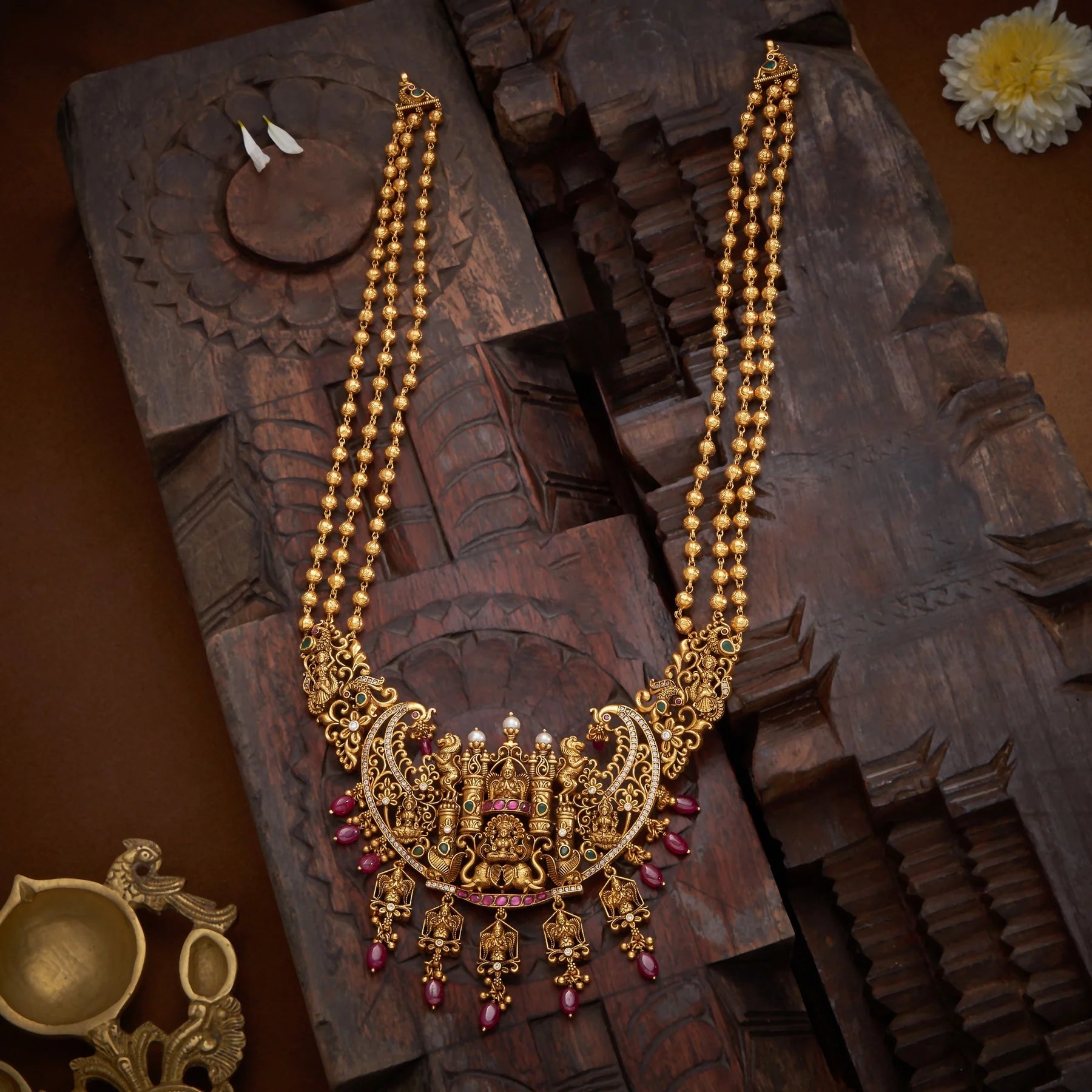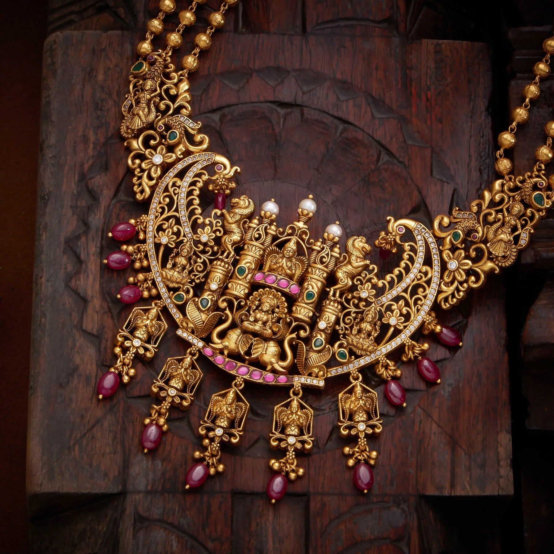 92.5 Silver, Gold Polish Shrimaya Temple Necklace