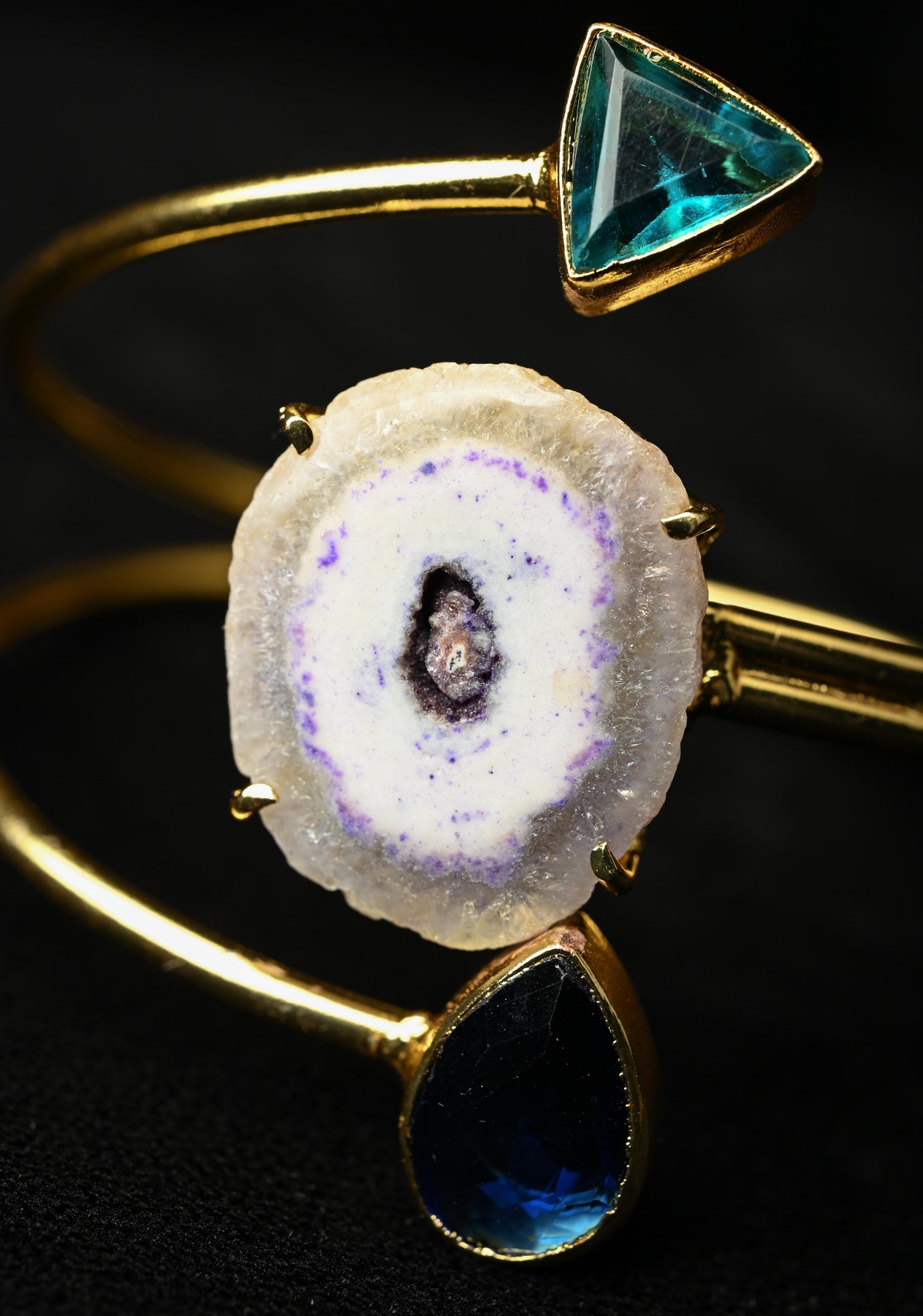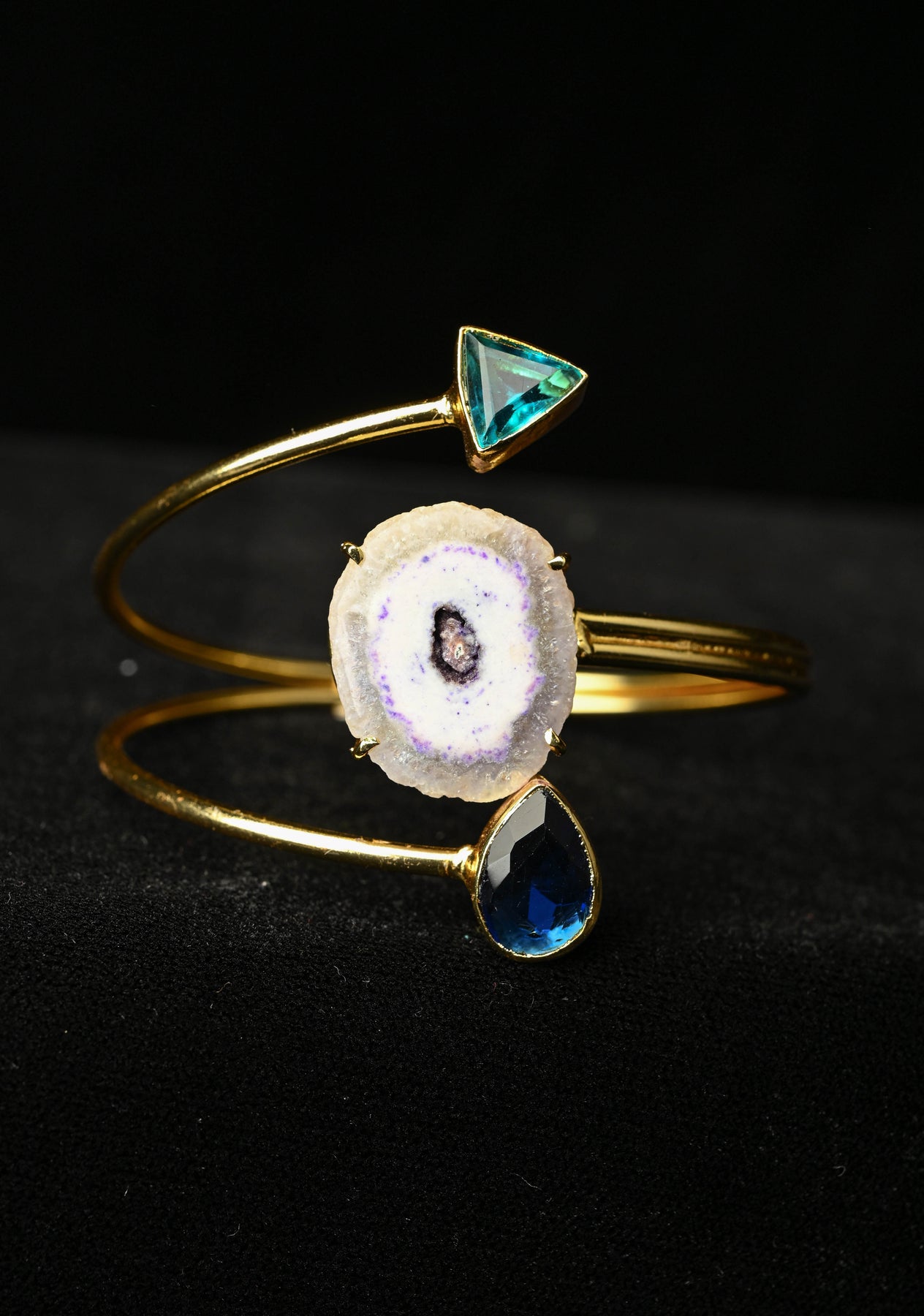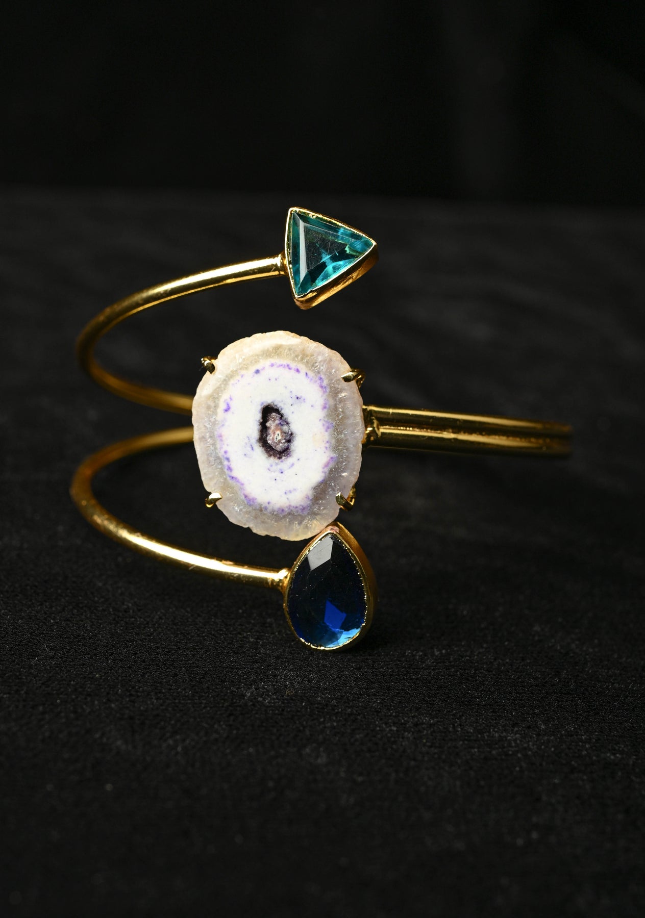 The Agate with Monalisa Stones Adjustable Handcuff Bracelet in Gold Tone is a striking fusion of elegance and contemporary design. Featuring vibrant agate stones paired with sparkling Monalisa stones, this handcuff-style bracelet exudes sophistication and charm. The gold-tone finish adds a warmth, while the adjustable design ensures a comfortable fit for any wrist. Perfect for adding a touch of glamour to both casual and formal outfits, it makes a versatile statement piece or thoughtful gift.