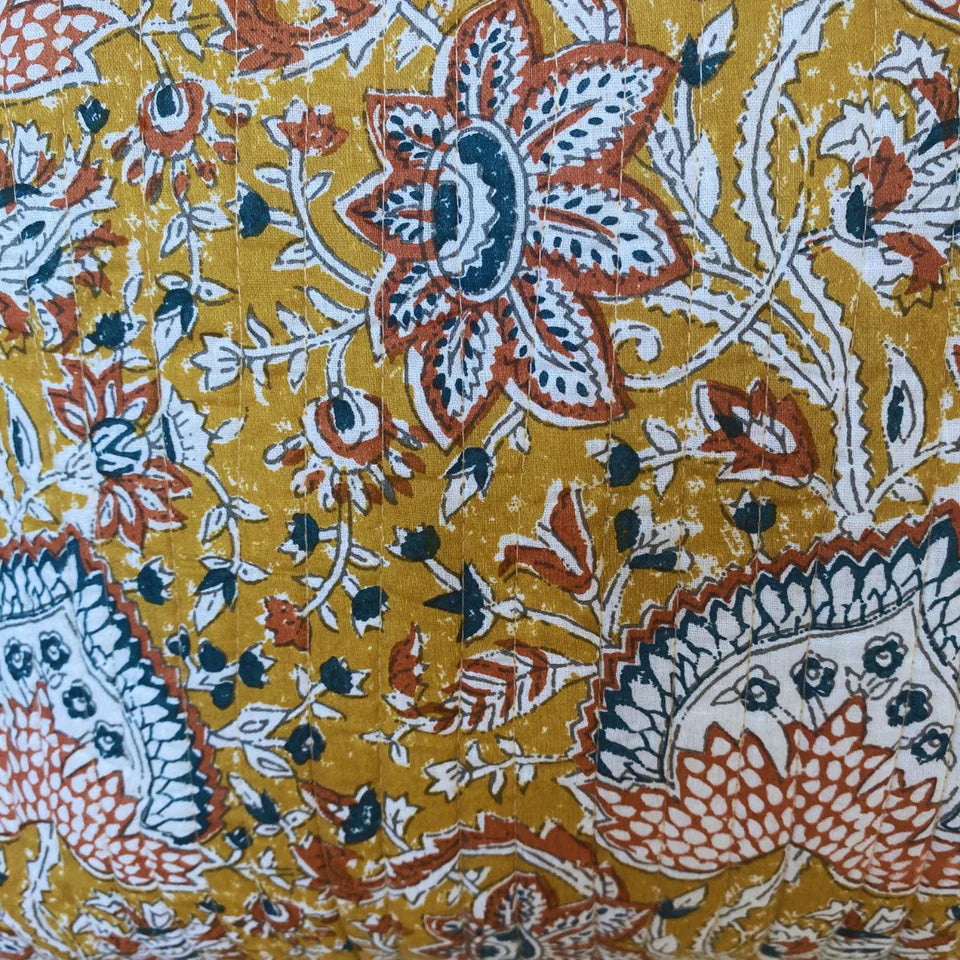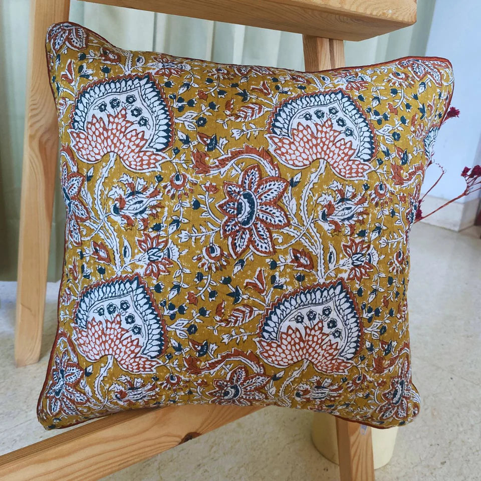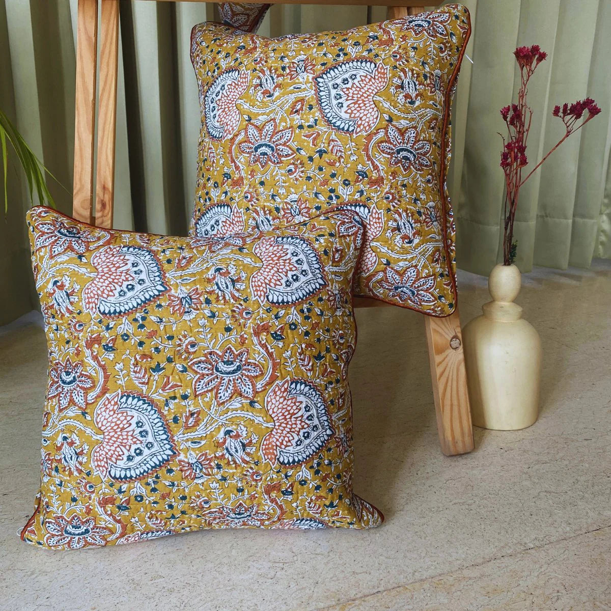 Add Ttimeless charm to your home with Coral Slub’s Amaltas Quilted Cushion Covers. Featuring exquisite hand-block prints, these artisanal pieces blend traditional craftsmanship with modern elegance. The intricate floral motifs are inspired by nature and rendered in warm, earthy tones, making them a versatile addition to any decor style.