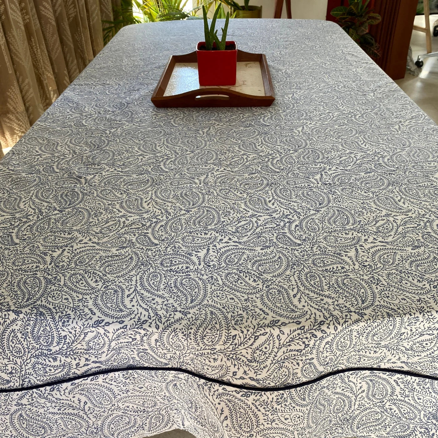 Transform your dining experience with the Azure Plume table cover. Made from 100% cotton, this tablecloth features a serene wave pattern in shades of blue and white.Perfect for adding a coastal touch to your dining space, this table cover will bring a sense of tranquility to every meal. Measuring 60' x 90', it is designed to fit a 6 seater dining table.Not only is this table cover stylish, but it is also practical. It is machine washable, making it easy to clean and maintain. Say goodbye to stains and spills and hello to effortless elegance with the Azure Plume table cover.Upgrade your dining table with this beautiful and functional piece. Shop now and add a touch of coastal charm to your home.