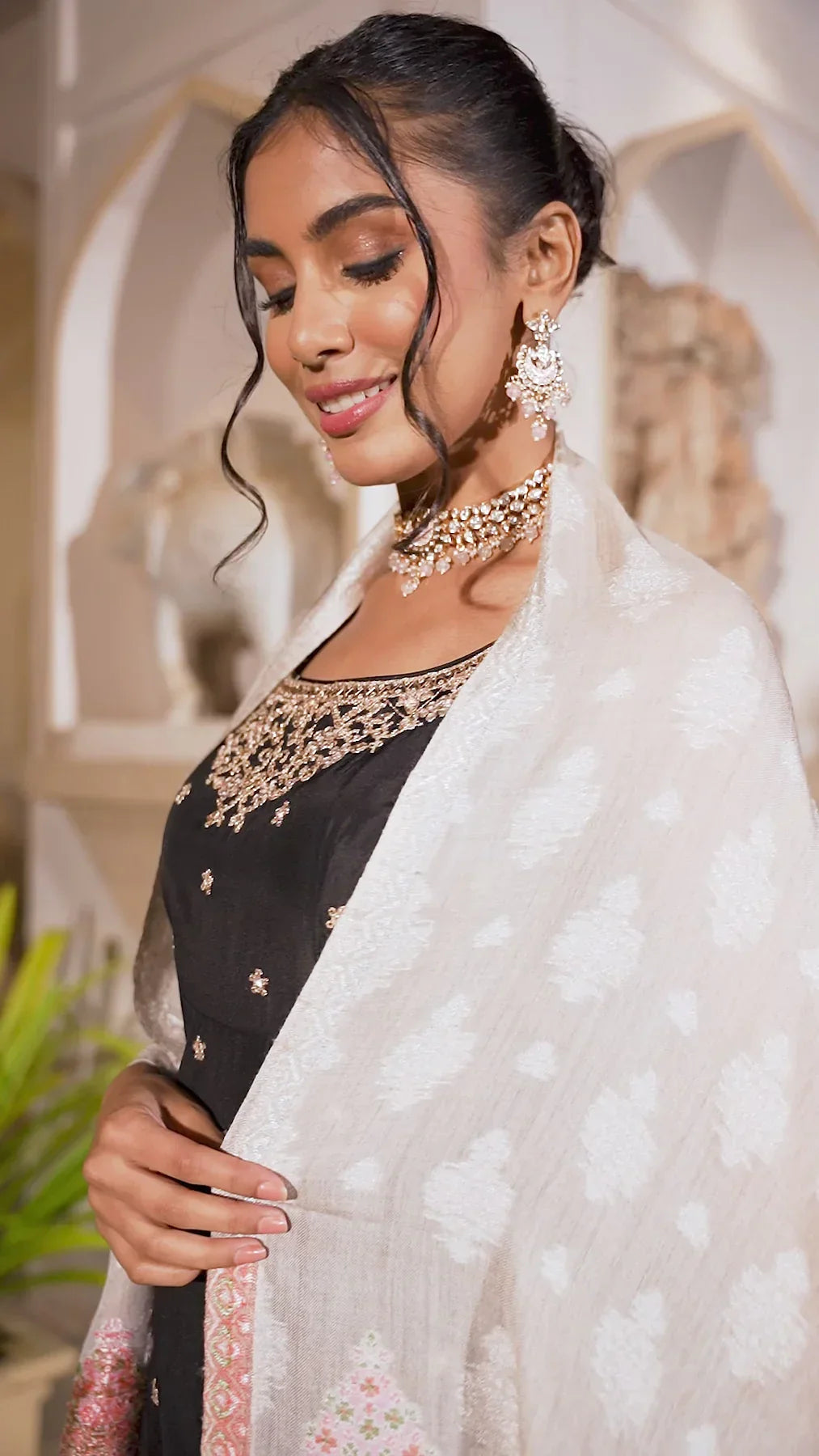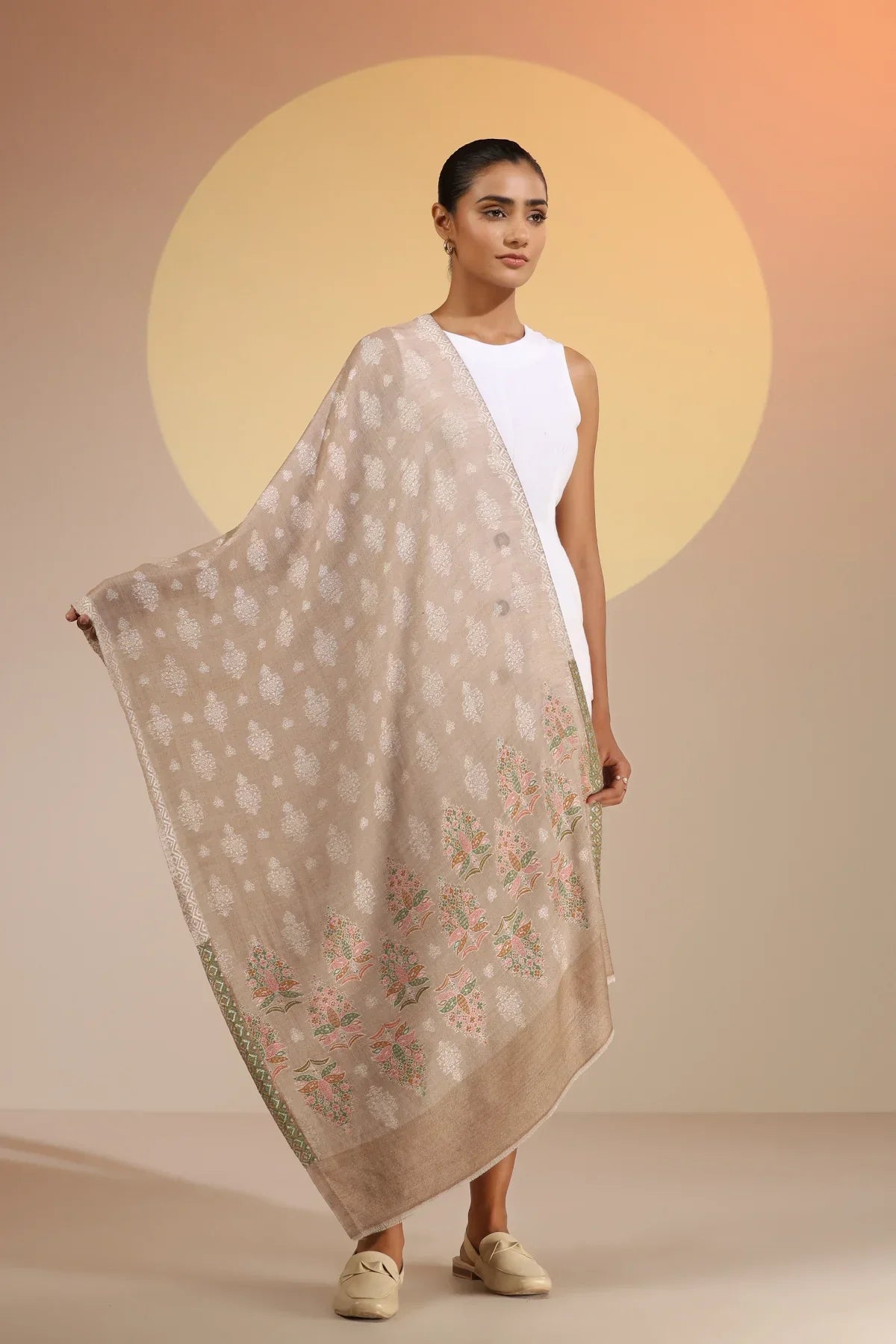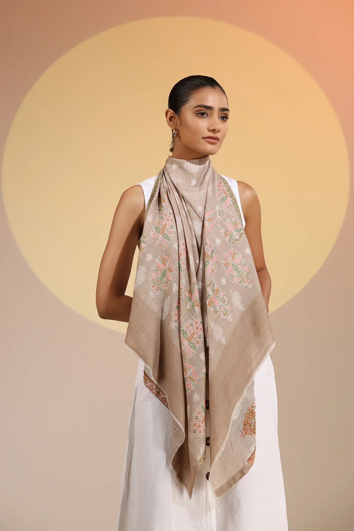 Introducing the Gifta cashmere fine wool stole, featuring a stunning motif design that exudes elegance and grace. Meticulously crafted with cashmere wool, this stole promises unparalleled softness and warmth, perfect for chilly days. The beautiful motif adds a touch of sophistication and charm to any attire, making it ideal for various occasions.