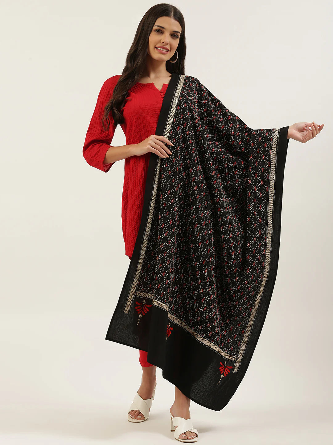Black Kantha Cotton Dupatta