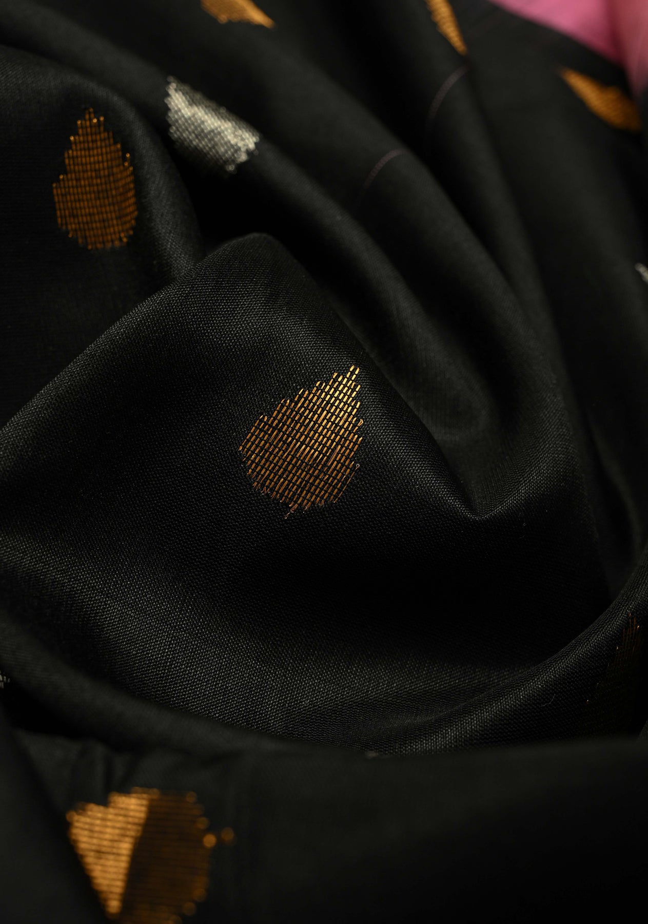 Black Uppada Handloom Silk Saree with Gold Silver Buttas and Tissue Border | SILK MARK CERTIFIED