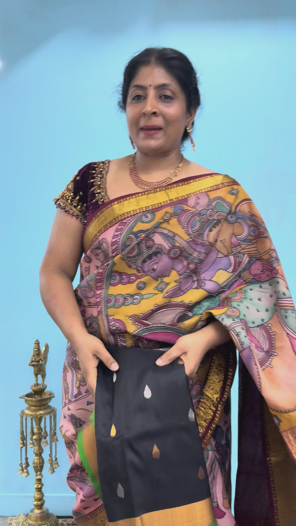 Black Uppada Handloom Silk Saree with Gold Silver Zari Buttas and Ikkat Border | SILK MARK CERTIFIED