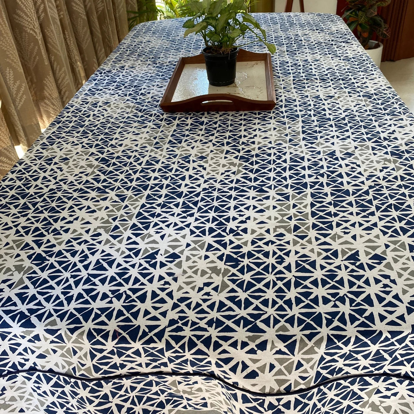 Transform your dining experience with the Blue Kaleidoscope table cover. Made from 100% cotton, this cover features a stunning geometric design in vibrant shades of blue. The intricate pattern is sure to catch the eye and add a playful touch to your dining space. Measuring 60' x 90', it is the perfect size for a 6 seater dining table.Not only is this table cover visually appealing, but it is also practical. It is machine washable, making it easy to clean and maintain. Say goodbye to stains and spills, and hello to effortless care.Elevate your next meal with the Blue Kaleidoscope table cover. Whether you're hosting a dinner party or enjoying a family meal, this cover will add a touch of style and charm to your table setting. Don't miss out on this must-have for any dining space.