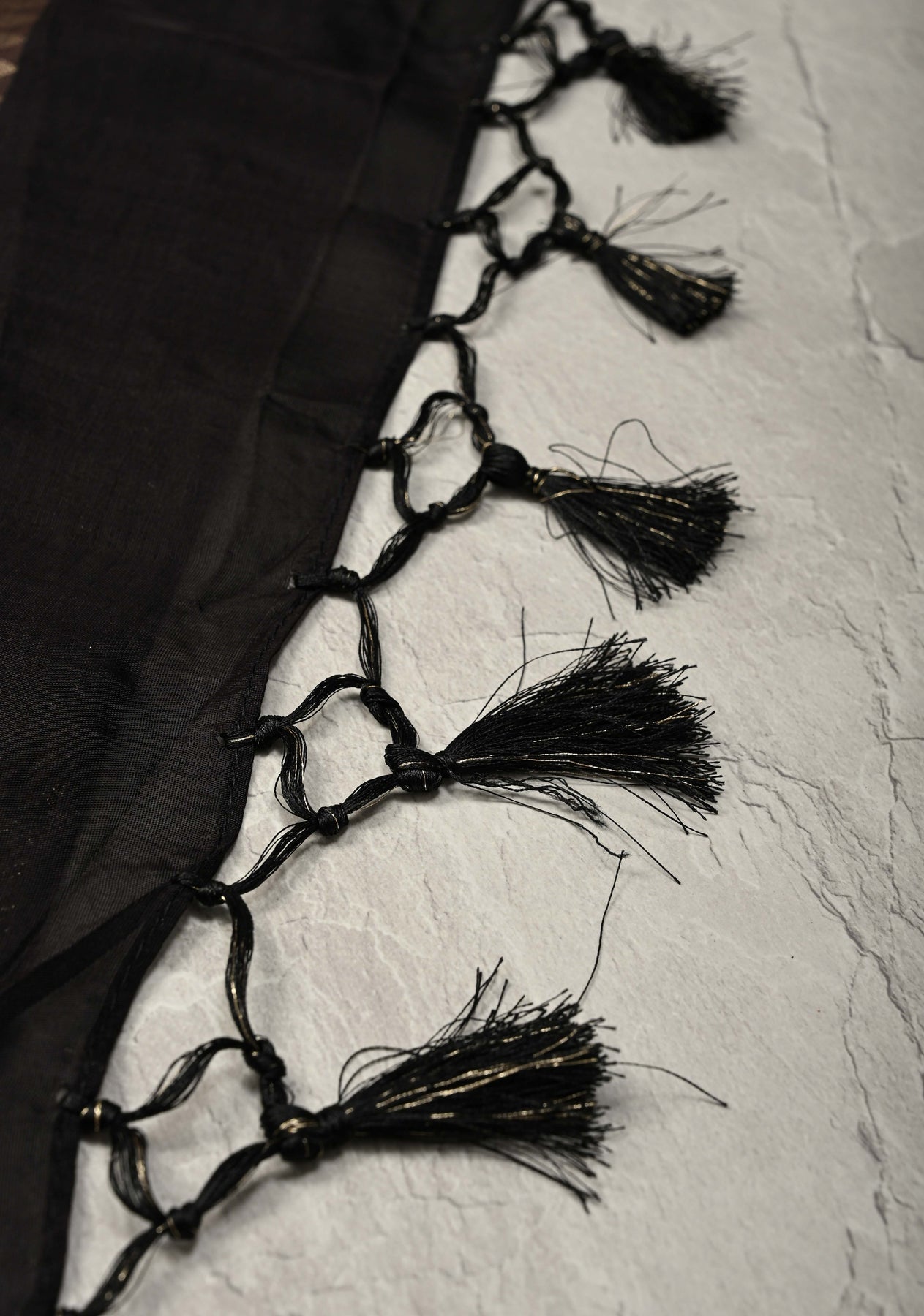 This saree is ready to wear with fall and pico done. Tassels adorn the pallu and add more grace to it.