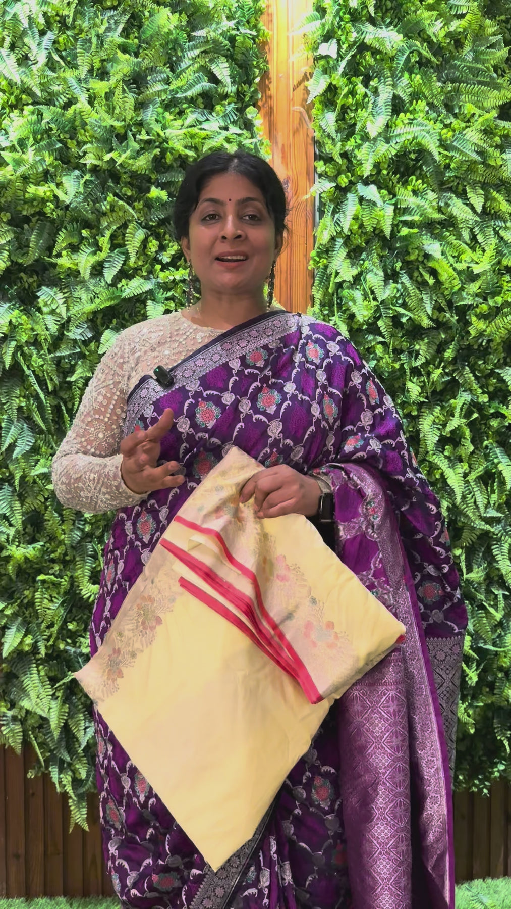 A Butter Yellow Semi Mashru Banarasi Silk Saree is a radiant blend of elegance and artisanal craftsmanship. Handwoven from semi Mashru Banarasi silk, it features a soft, warm butter yellow hue, exuding a gentle glow and subtle sophistication. The saree is adorned with delicate silver or gold butti, intricately woven zari motifs scattered across the body, adding a shimmering, refined touch. The zari borders, enhanced with a unique hand brush dye technique, display vibrant, artistic strokes that complement the intricate zari work, creating a striking, handcrafted aesthetic. Perfect for festive occasions, weddings, or special events, this saree drapes gracefully, marrying traditional Banarasi artistry with contemporary flair