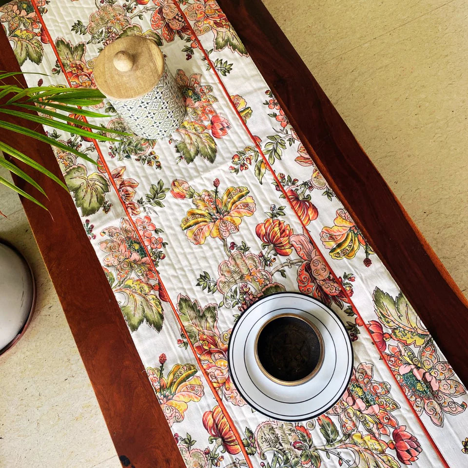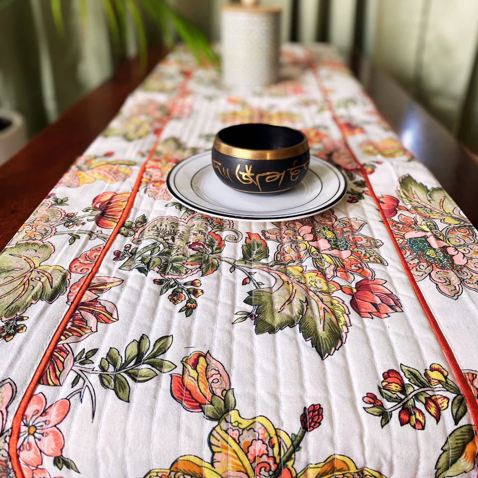 Add a refreshing touch of elegance to your dining or console table with our Garden Print Table Runner. Featuring a delightful floral design in vibrant coral tones, this table runner is the perfect blend of sophistication and charm. It effortlessly fits into both traditional and modern home settings, making it a versatile addition to your decor.