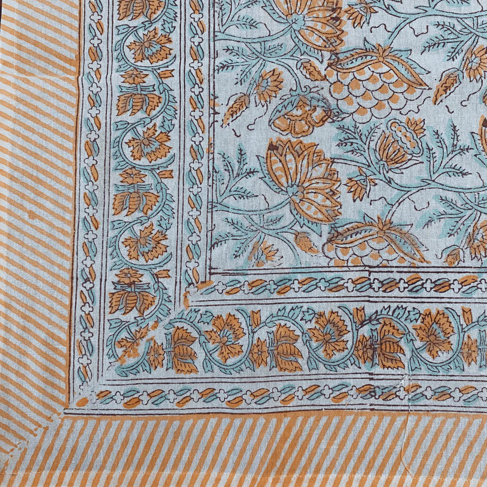 Crafted using age-old hand block printing techniques, each "Daisy" tablecover is a unique creation, showcasing the meticulous craftsmanship of traditional artisans. The fabric is made from premium cotton canvas, known for its durability and ease of maintenance. This tablecover combines the timeless beauty of floral designs with the practicality needed for daily use, ensuring it remains a centerpiece of your home decor for years to come.