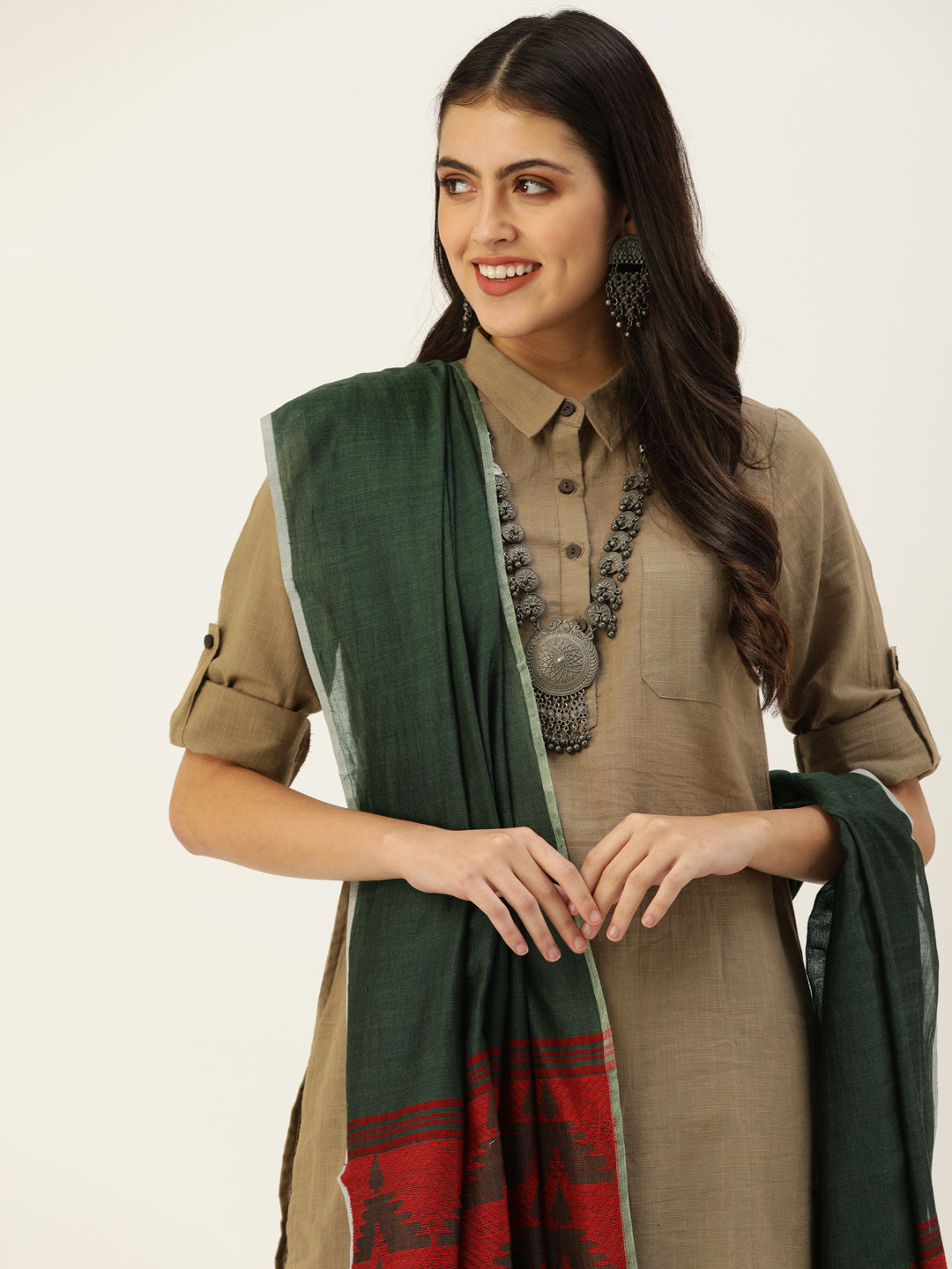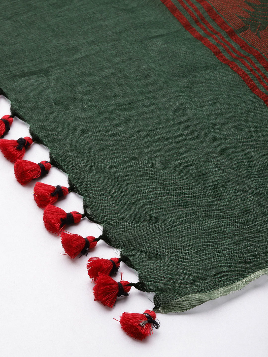Dark Green Handloom Jaquard Mul Cotton Dupatta