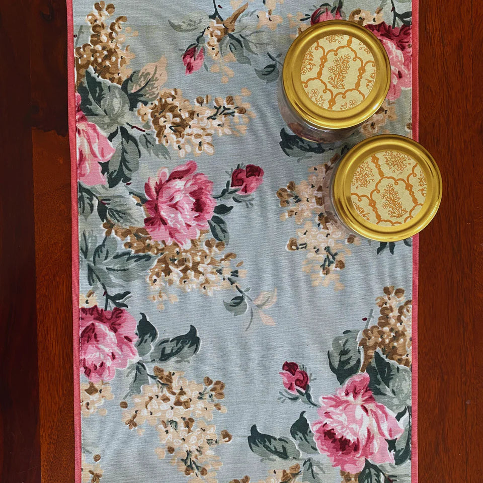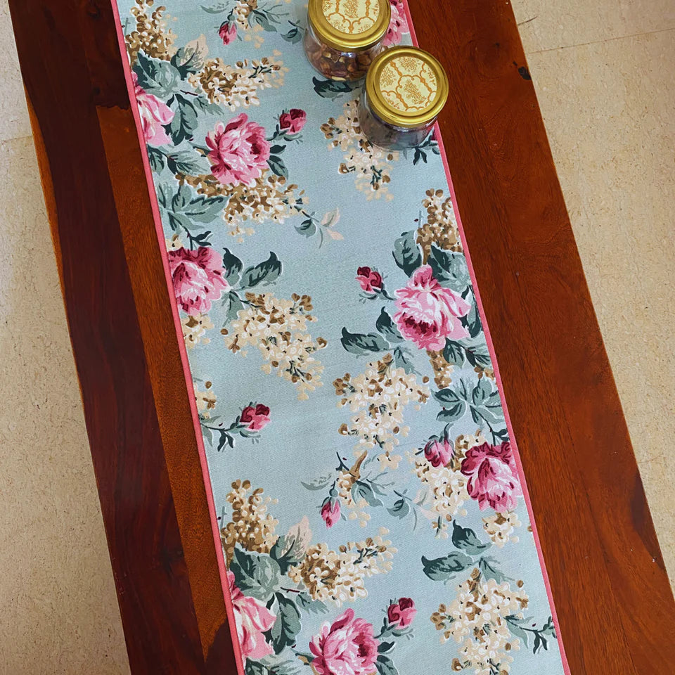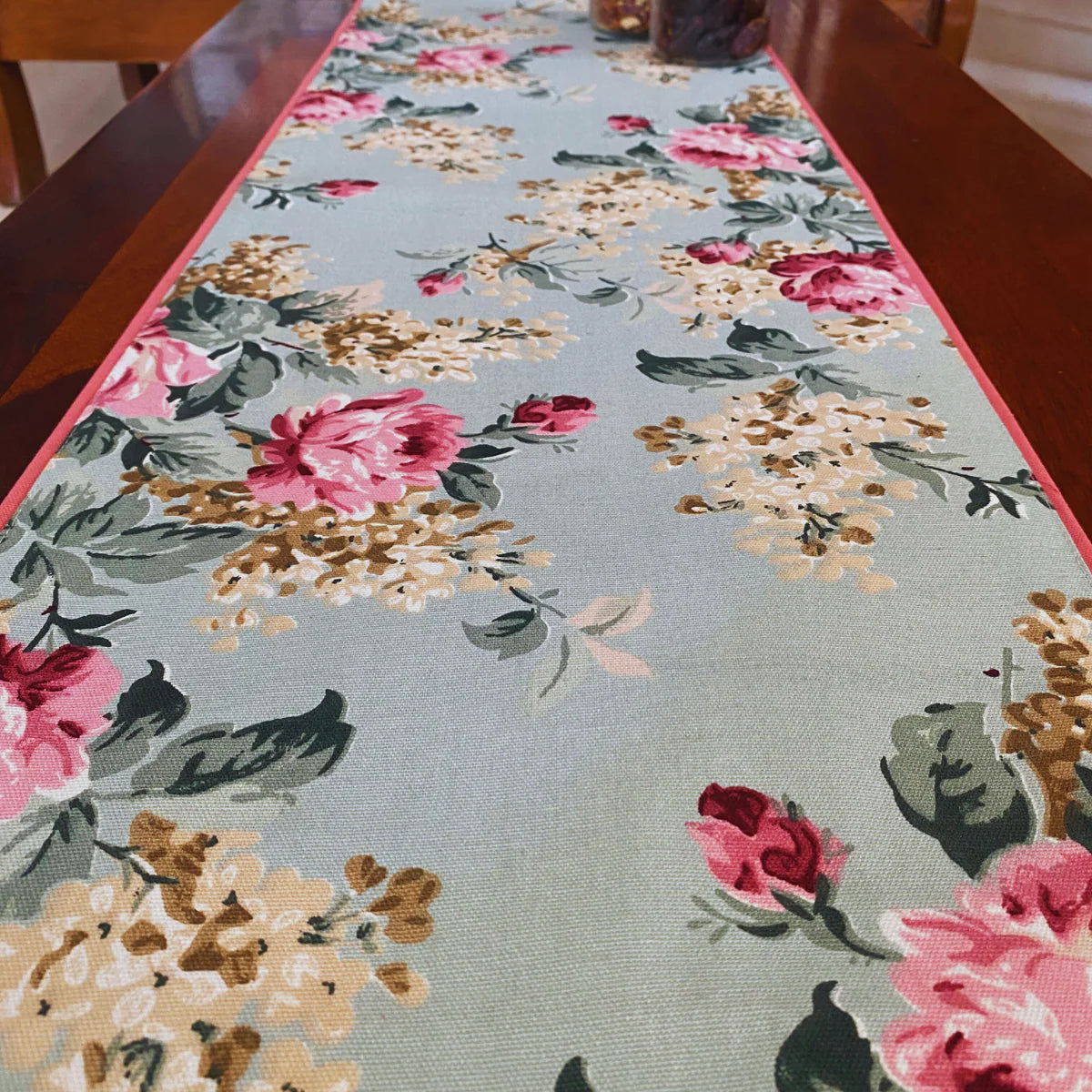 Add a splash of floral freshness to your table with our Dewberry table runner. Made from durable cotton canvas, this design showcases a beautiful bloom of roses and delicate buds on a pastel base — soft, romantic, and perfect for brightening everyday settings. The 13" x 72" size fits most 4–6 seater tables comfortably.