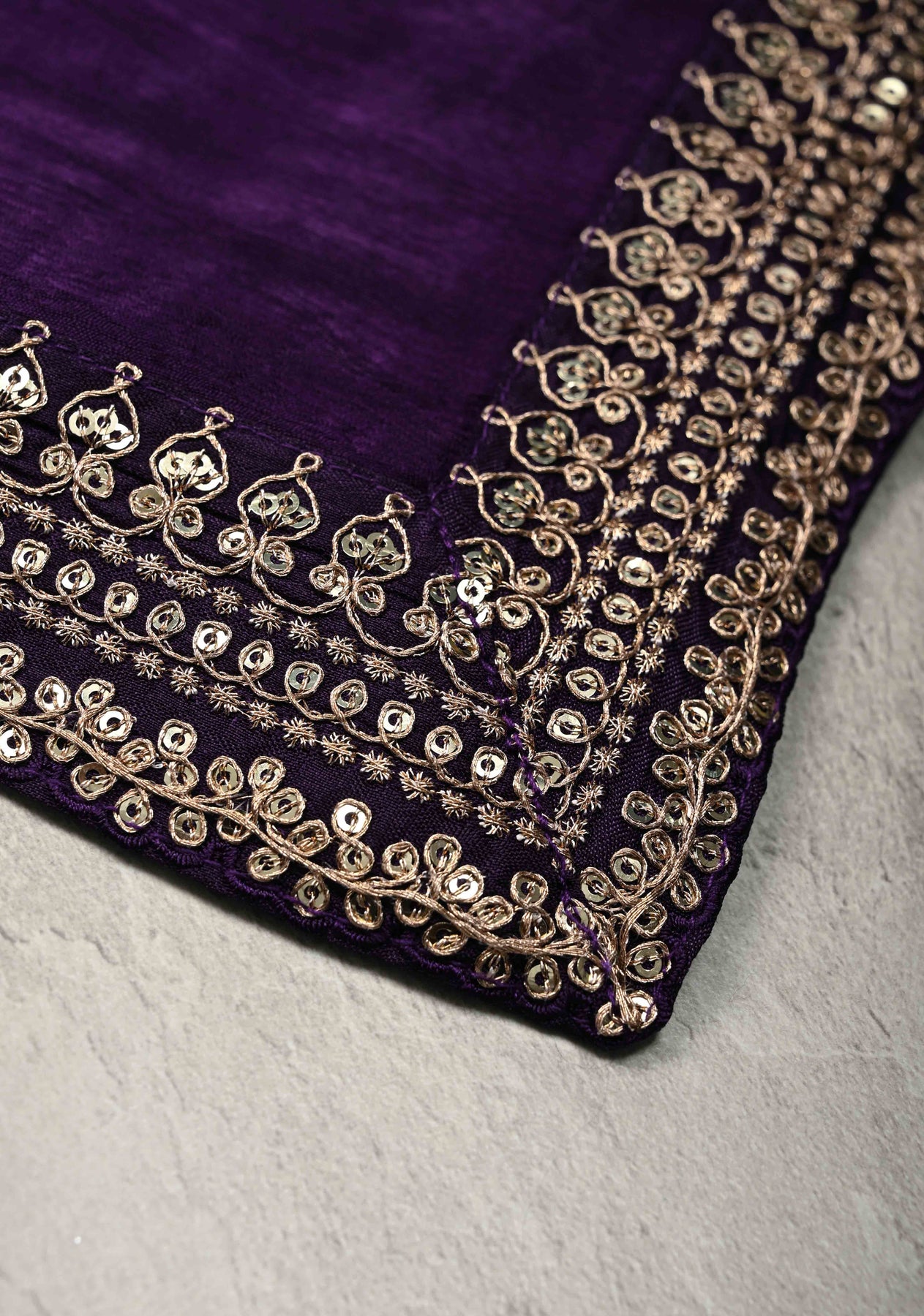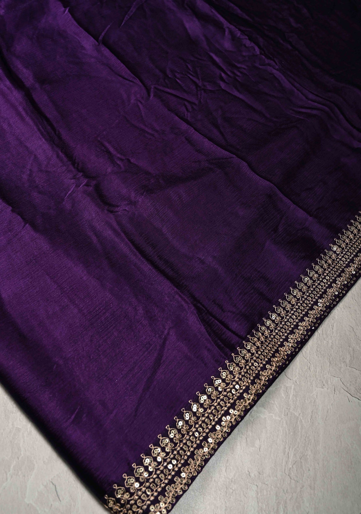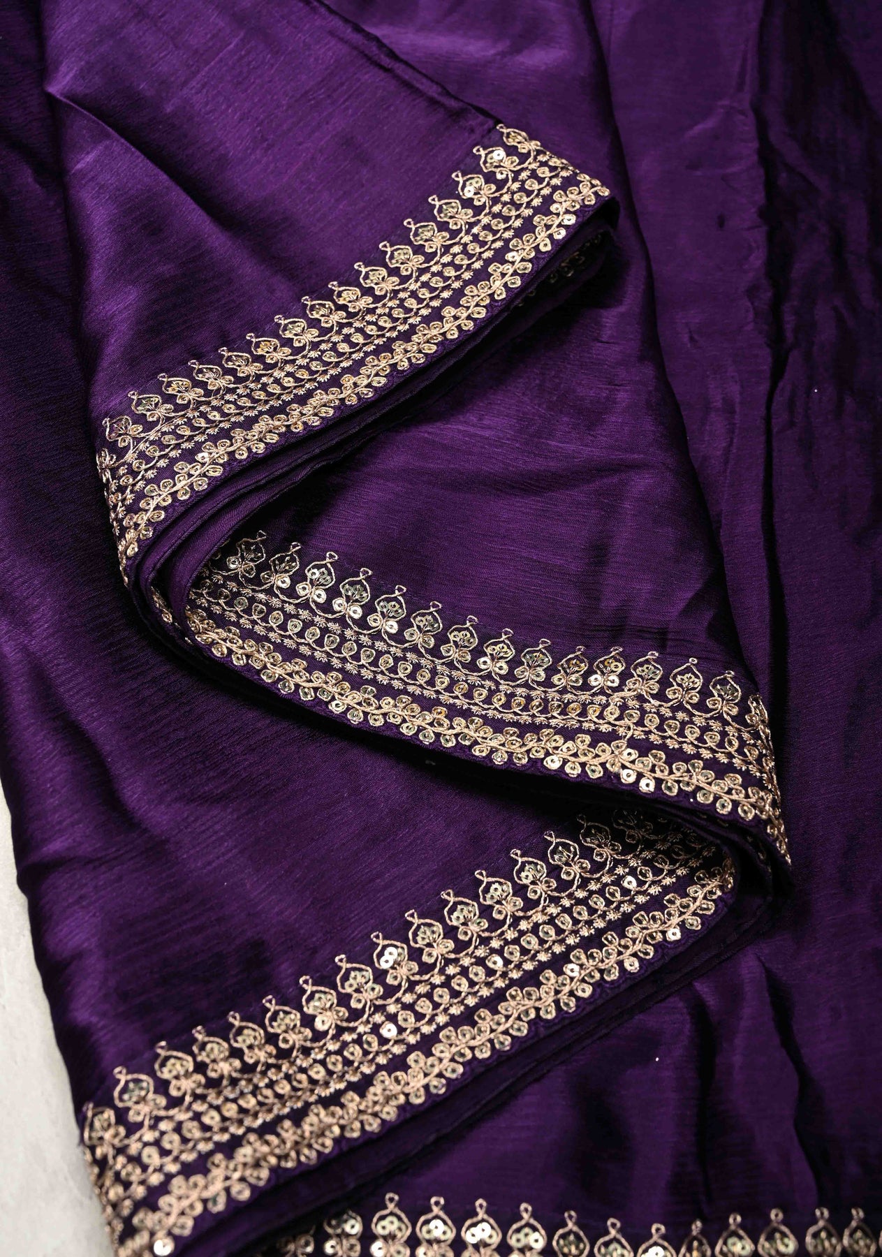 Jamuni Purple Satin Georgette Saree with Fancy Lace Border and Velvet Butta Blouse Piece