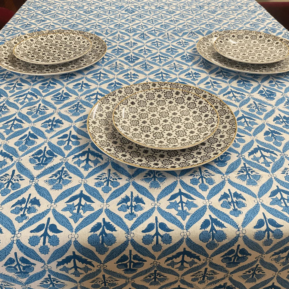 Each "Lagoon" tablecover is produced using traditional hand block printing methods, a testament to the skill and dedication of artisanal craftsmanship. The premium cotton canvas fabric not only enhances the visual appeal with its fine texture but also ensures durability and ease of maintenance. This tablecover is designed to withstand the rigors of daily use while maintaining its unique aesthetic appeal, making it a practical choice for both everyday meals and special gatherings.