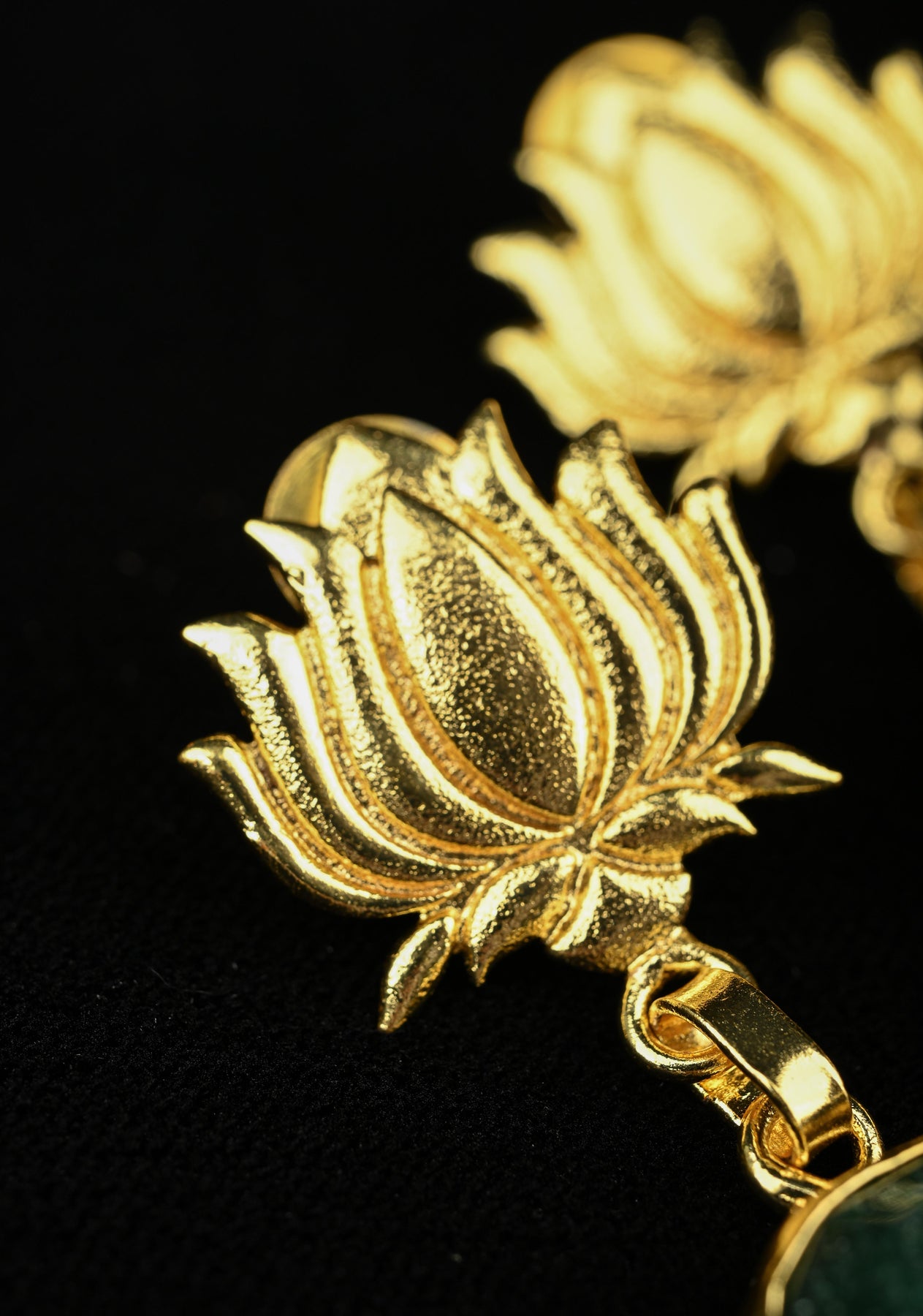 The Lotus Green Stone Drop Earrings feature a serene, nature-inspired design centered around green stones. Shaped to evoke the elegance of a lotus bloom, these drop earrings offer graceful movement and a calming, organic aesthetic. Perfect for adding a fresh, colorful accent to both casual and dressy outfits, they bring a touch of refined sophistication and natural beauty to any jewelry collection.