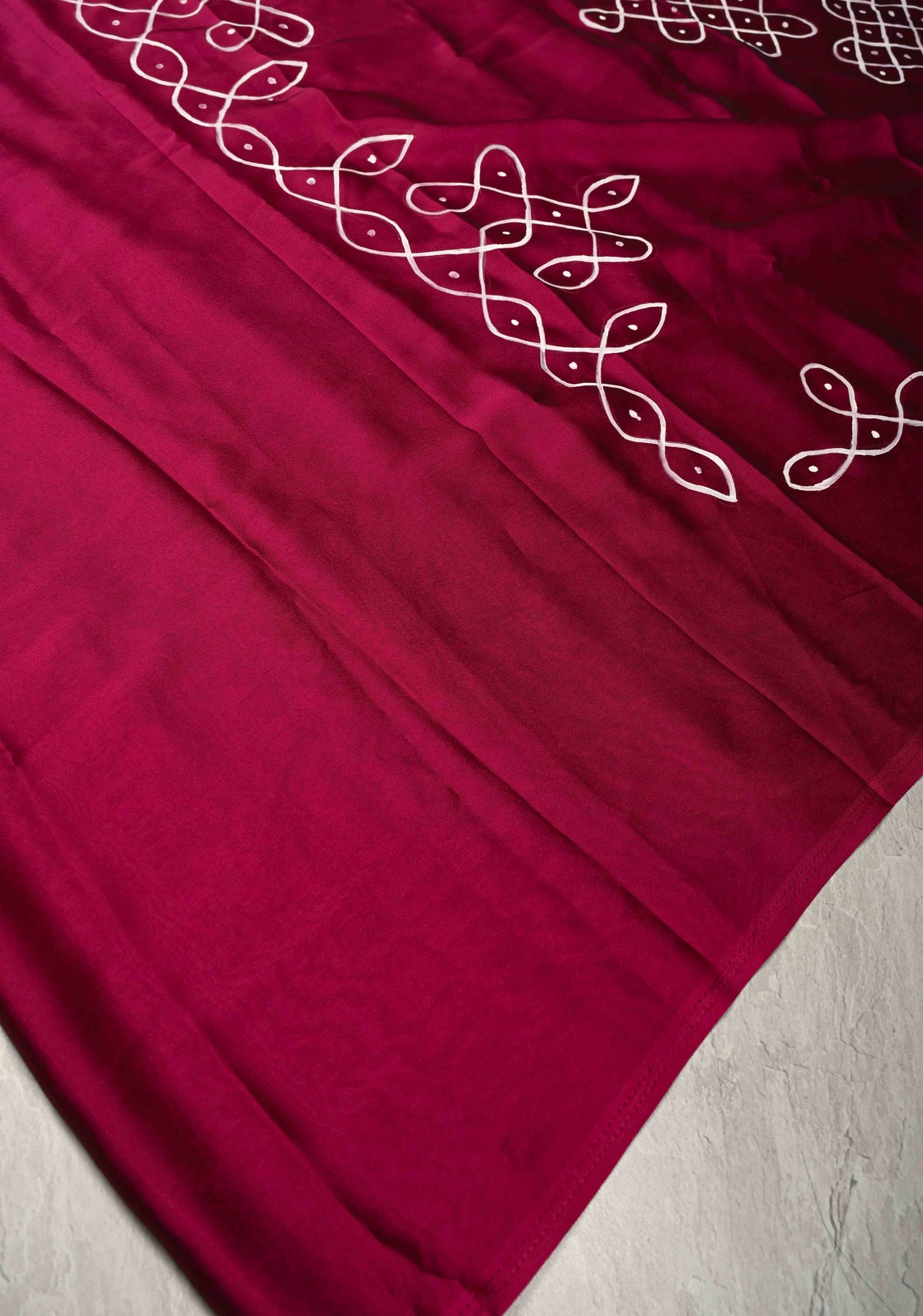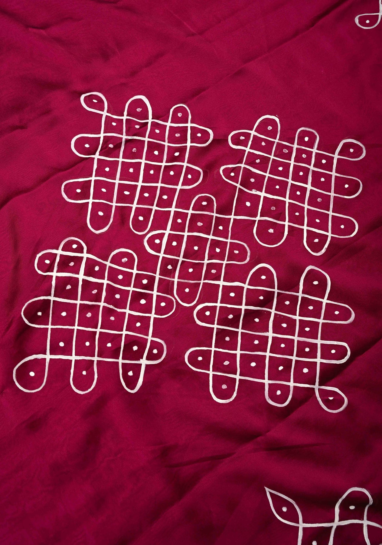 Magenta Georgette Saree with Rangoli Design Hand Painting on Pallu, No Blouse Piece