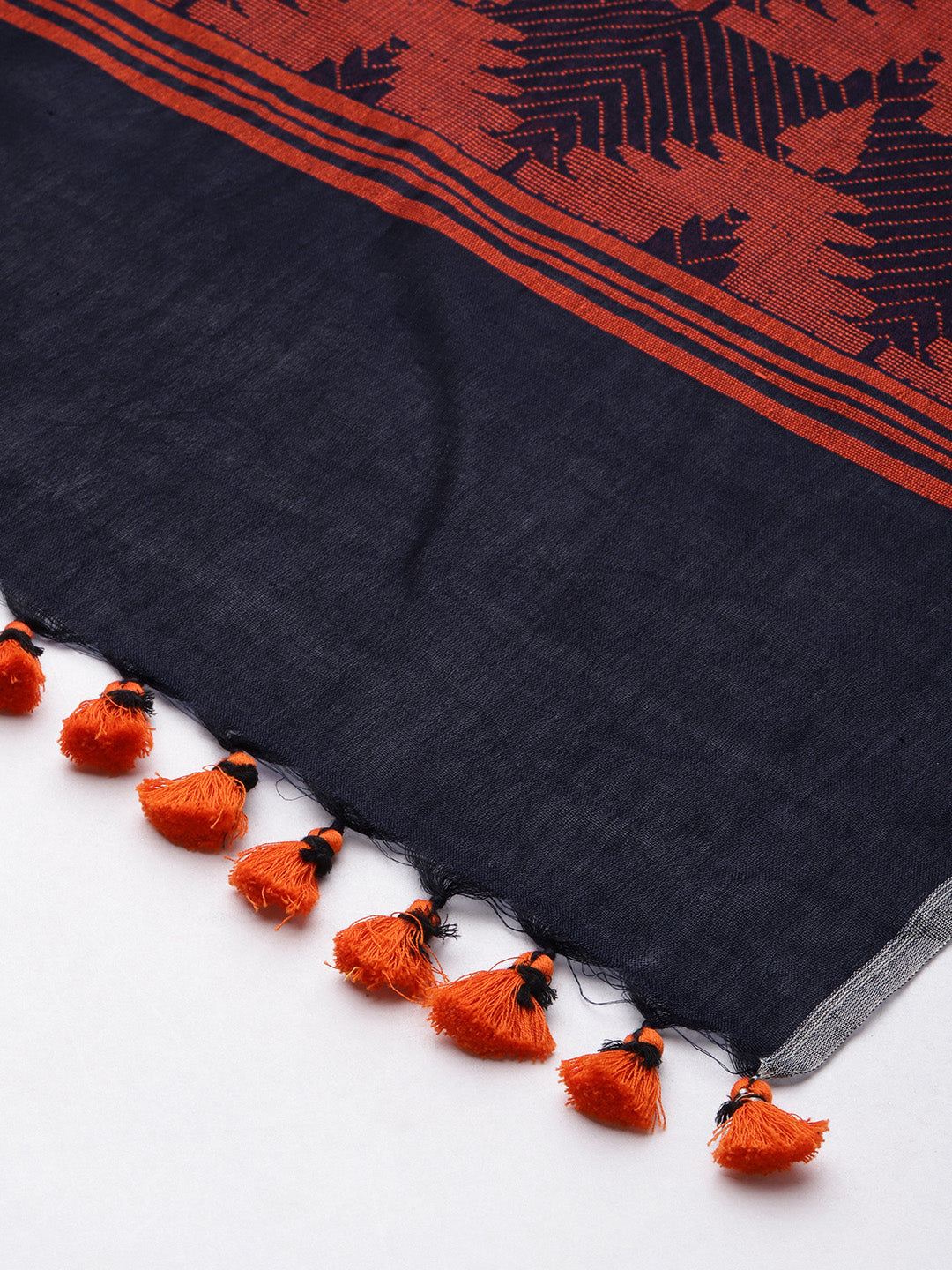 Midnight blue Handloom Jaquard Mul Cotton Dupatta