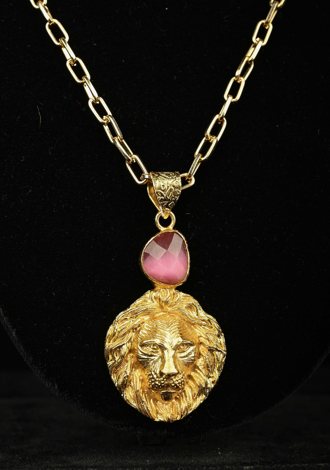 Bold and symbolic, the Monalisa Stone Lion Head Pendant Necklace is a powerful statement piece that embodies strength, courage, and regal elegance. Crafted with a striking lion head pendant adorned in rich Monalisa stone, this necklace showcases intricate detailing and a luminous finish. The lion motif represents leadership and confidence, making it a distinctive accessory for those who embrace fearless style. Perfect for festive occasions, evening wear, or statement styling, this necklace blends artistic craftsmanship with contemporary appeal.
