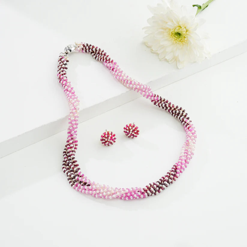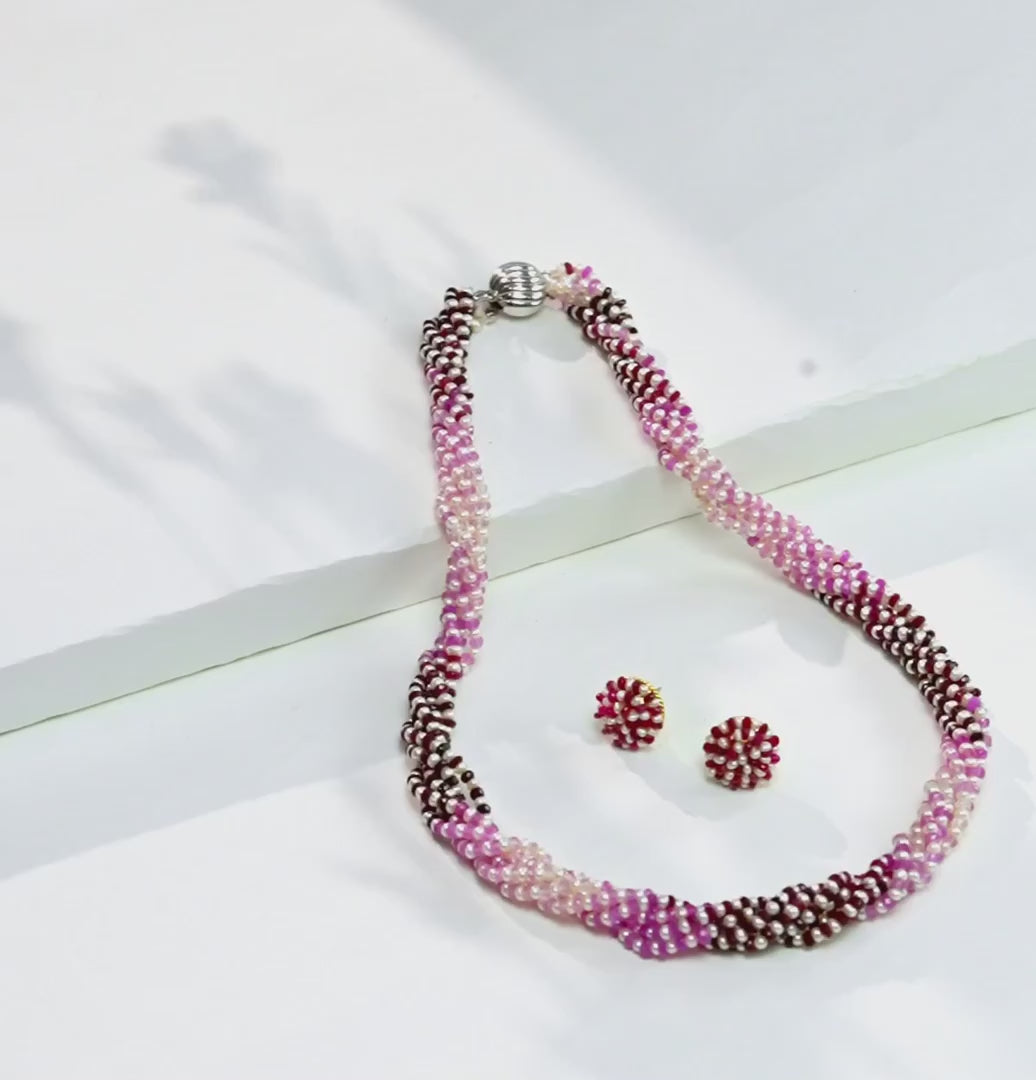 Introducing our Freshwater Cultured Pearl necklace, a symbol of timeless grace and beauty. This exquisite piece features pristine white seed pearls sized 1-2 MM, arranged in an elegant 6-row design. Measuring 18 inches and weighing approximately 53.5 grams, it is delicately accented with natural red ruby cut (faceted) stones for a regal pop of color. Backed by a lifelong guarantee on pearls and natural stones, this necklace promises enduring elegance and value. Perfect for festive occasions, weddings, or family celebrations, it beautifully complements sarees, lehengas, and modern outfits, adding a touch of classic sophistication to every ensemble.