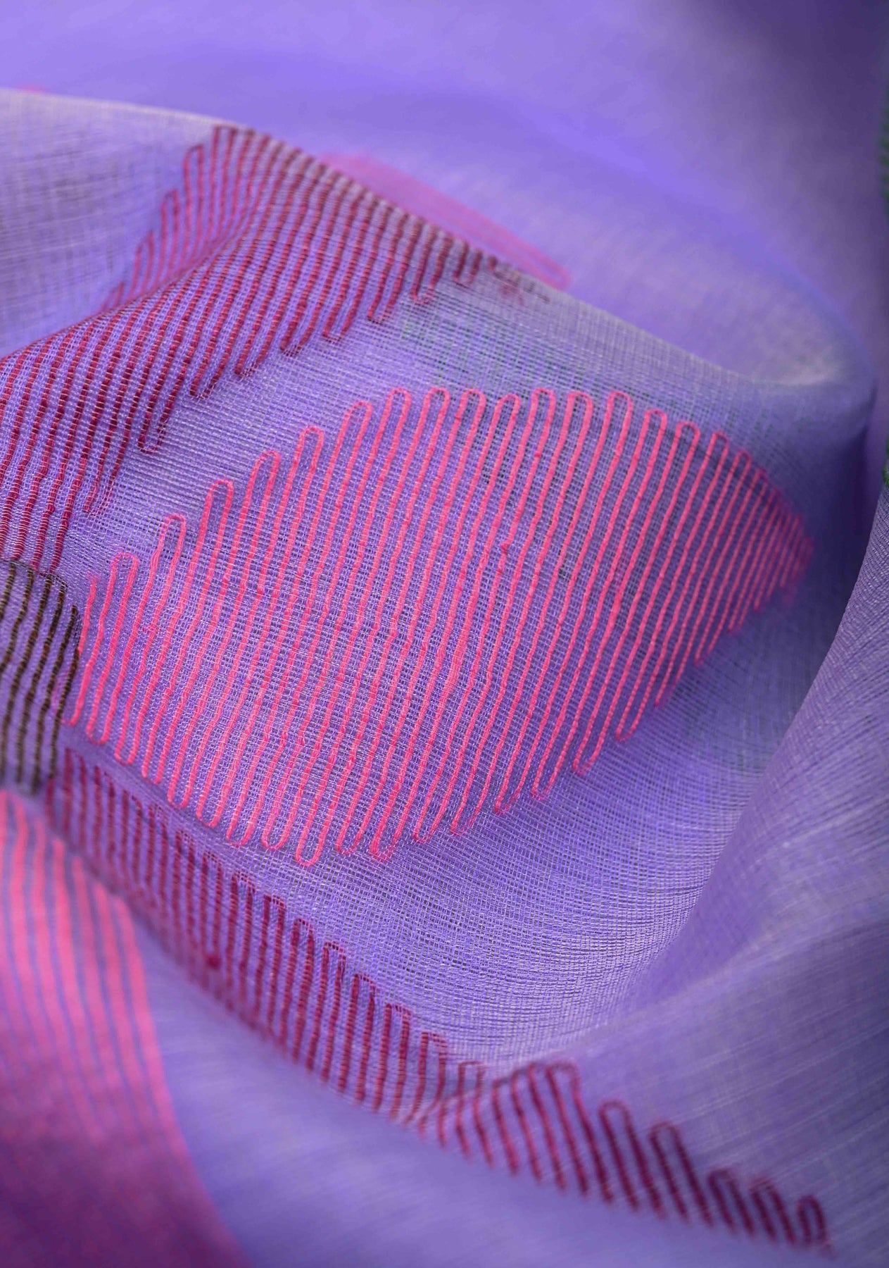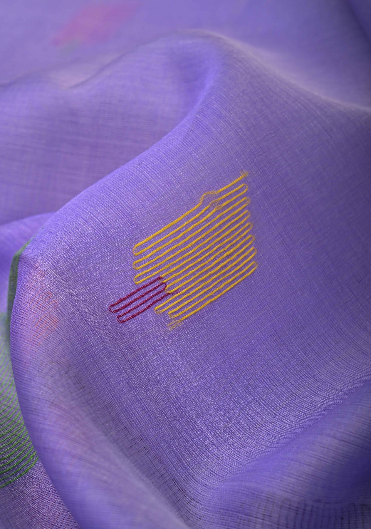 This Periwinkle Mercerized Cotton Tissue Saree beautifully combines subtle elegance with traditional craftsmanship. Woven from soft mercerized cotton with a delicate tissue finish, the saree offers a gentle sheen and a comfortable, lightweight drape. Adorned with intricate hand Jamdani work, it showcases timeless motifs that highlight artisanal skill. The minimal tissue border adds a refined, understated frame to the saree, allowing the soothing periwinkle shade and detailed craftsmanship to take center stage. Perfect for festive occasions, casual gatherings, or formal events, this saree embodies grace and versatility.